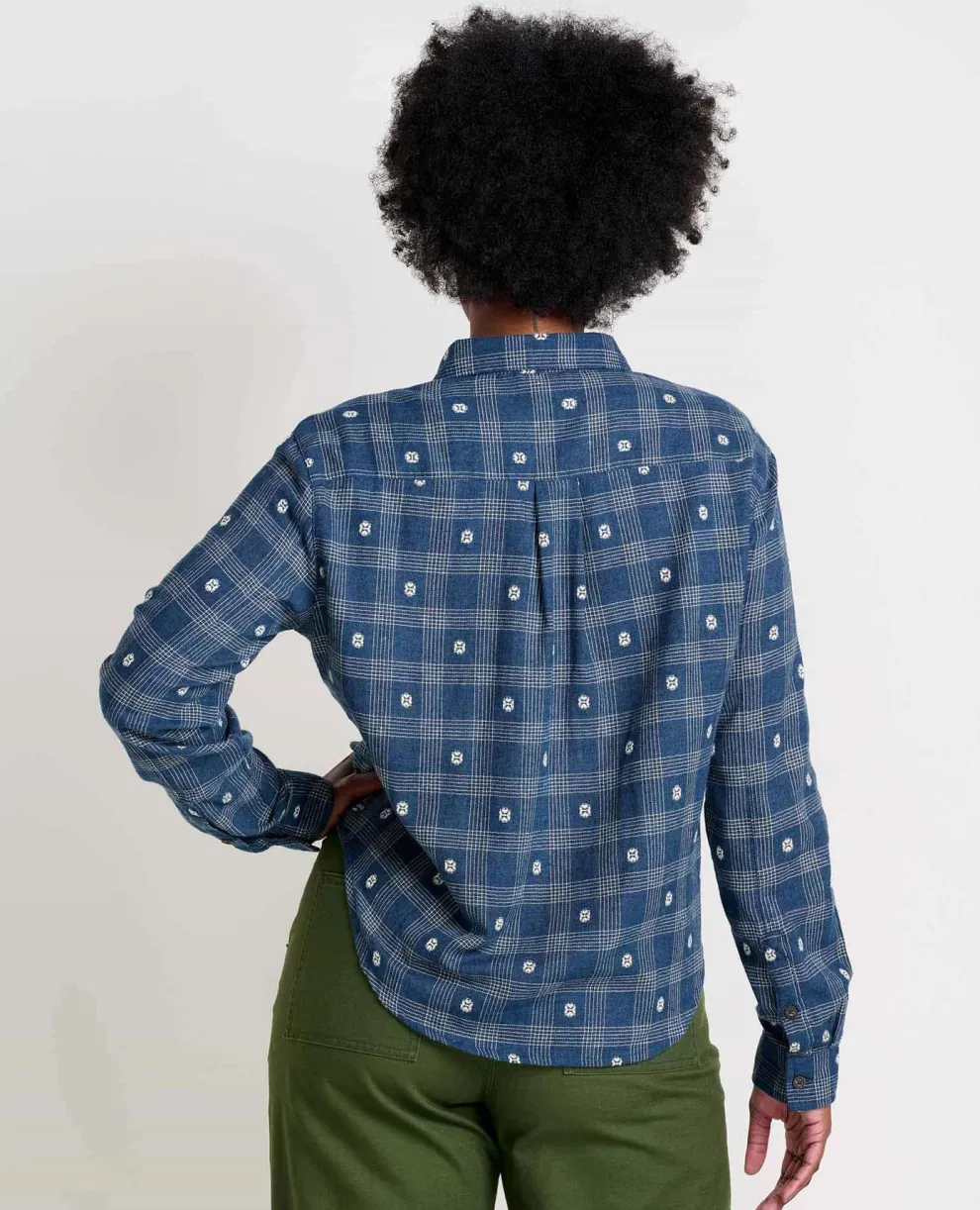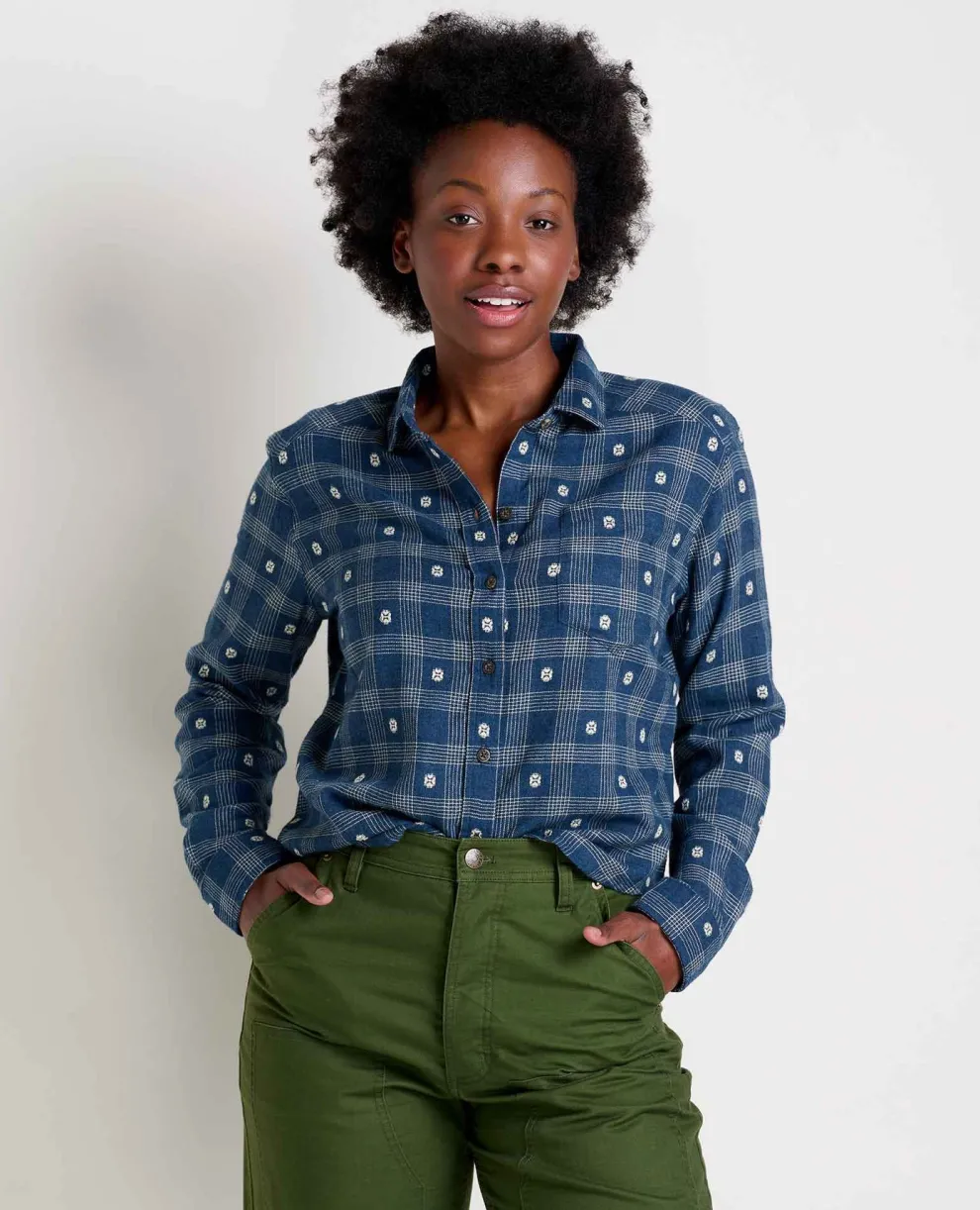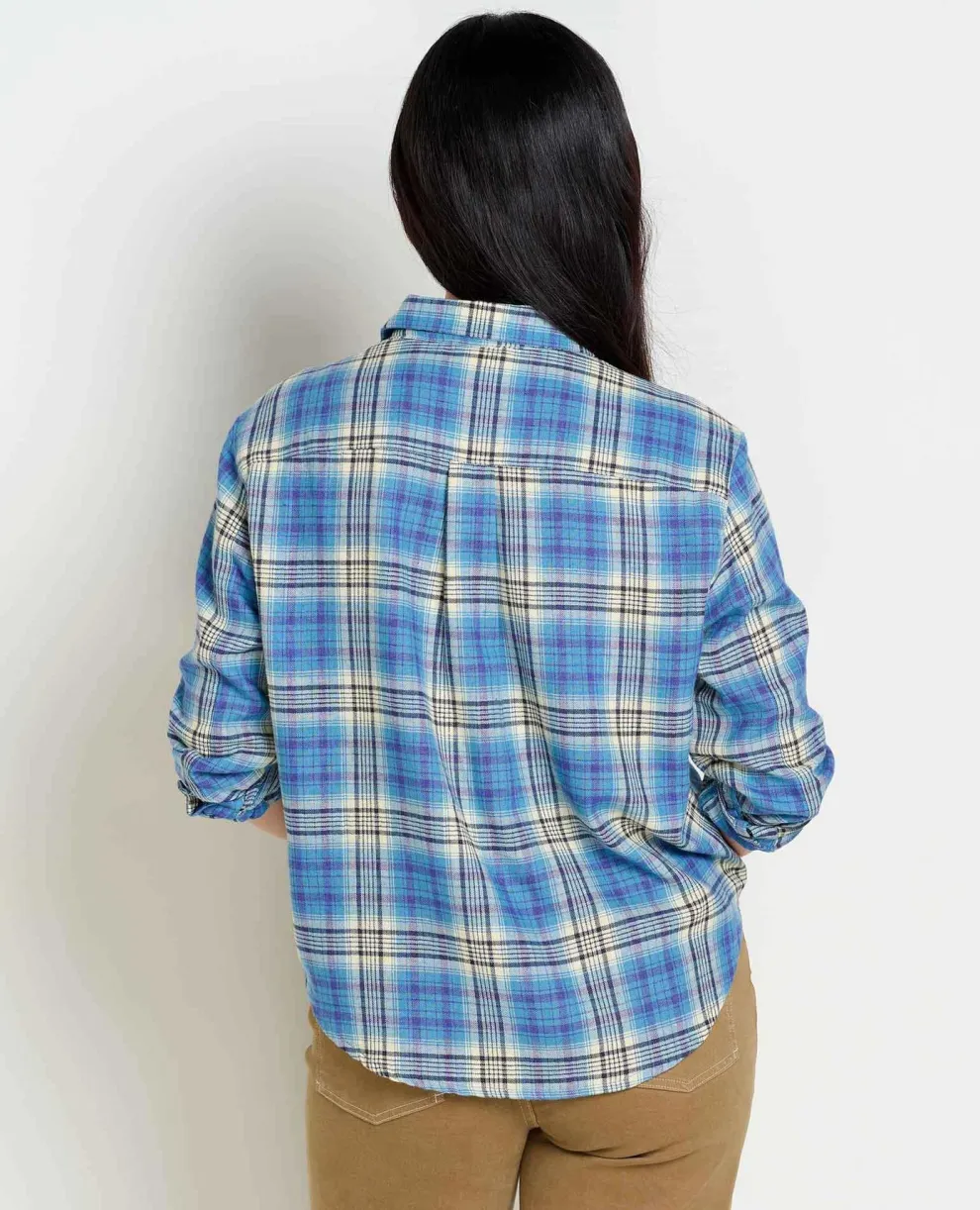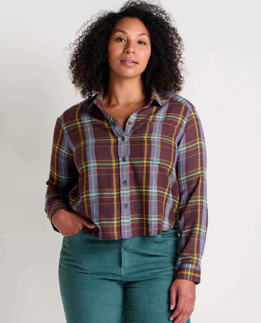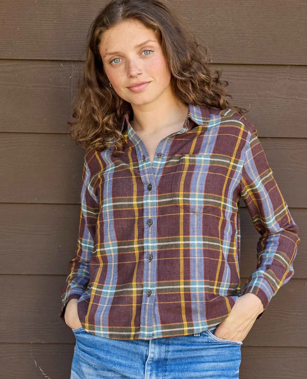 Cue the compliments. This relaxed flannel in eye-catching colors takes any casual outfit up a notch with a peter pan collar, chest pocket, and slightly cropped length. Our Re-Form Fabrics are made from 100% recycled materials. This mid-weight Re-Form Herringbone is made from post-consumer plastic bottles and salvaged cotton textiles (some from our very own fabric scraps!). A soft hand and classic herringbone weave seal the deal.