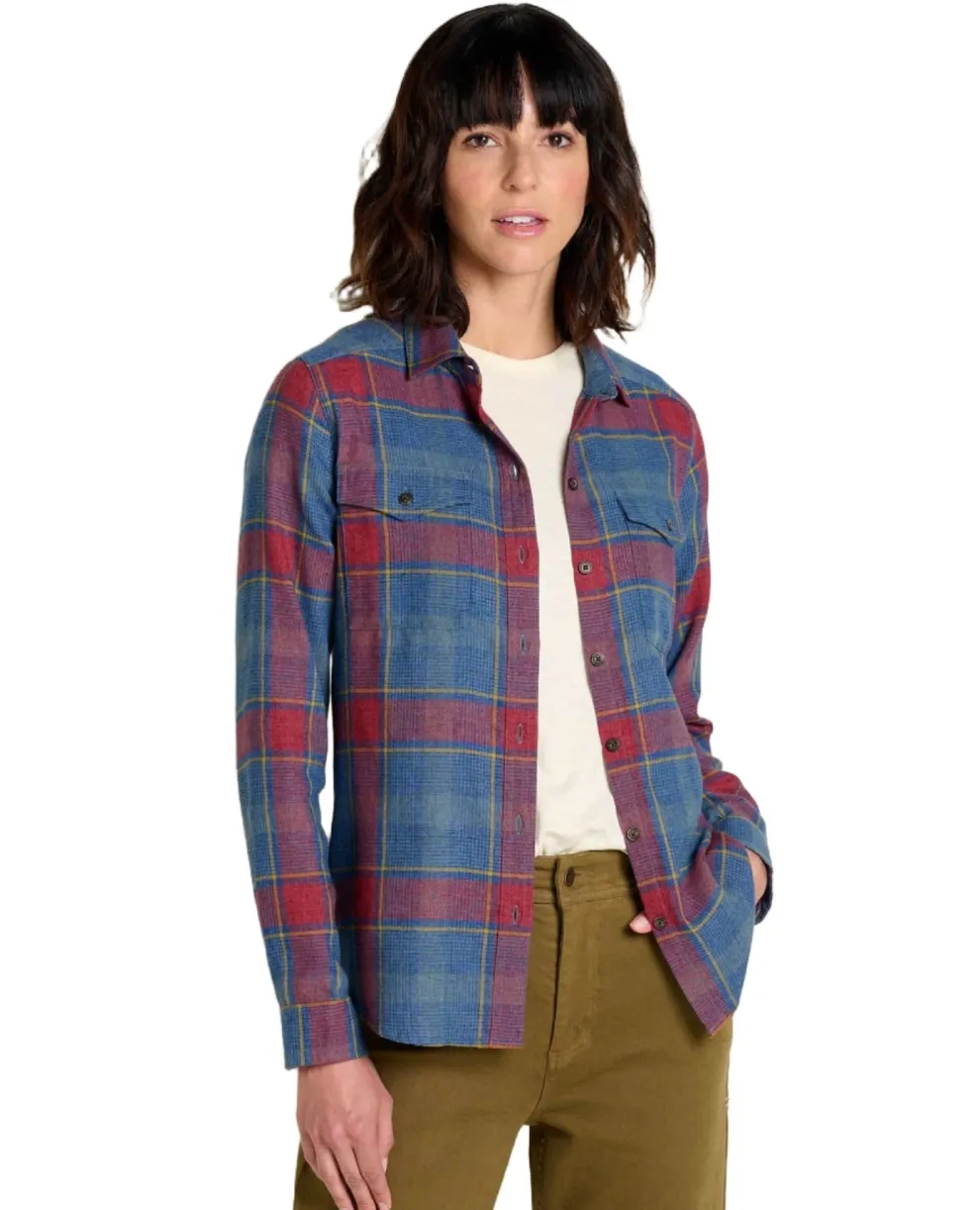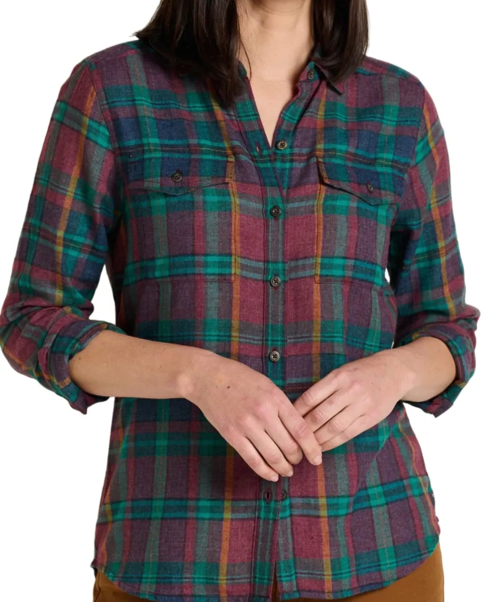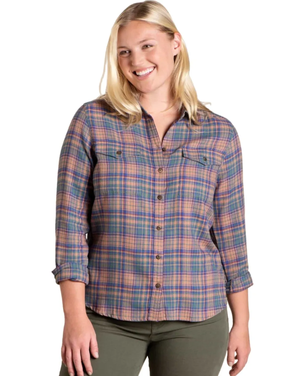 A flannel shirt fit for an outdoor queen. Ours is a lightweight herringbone weave available in epic color combos made better by recycled polyester.