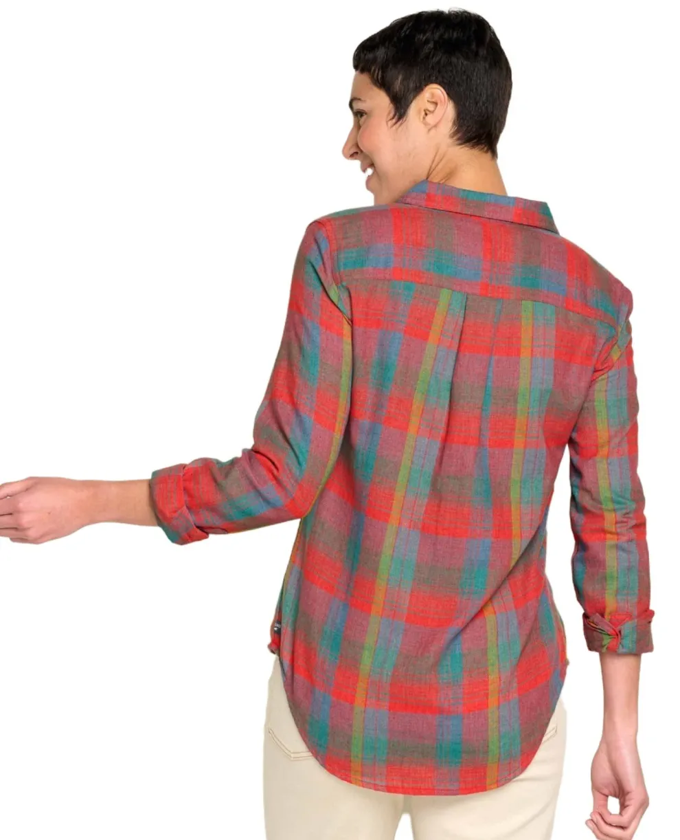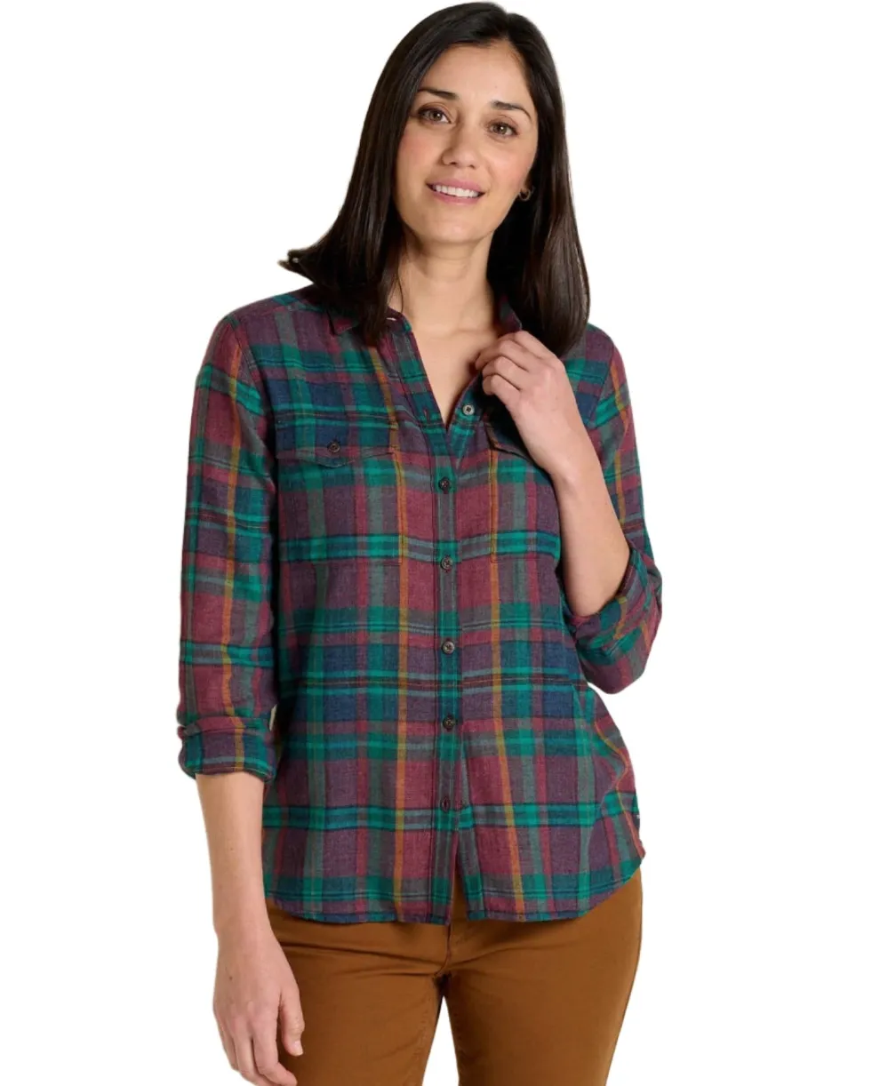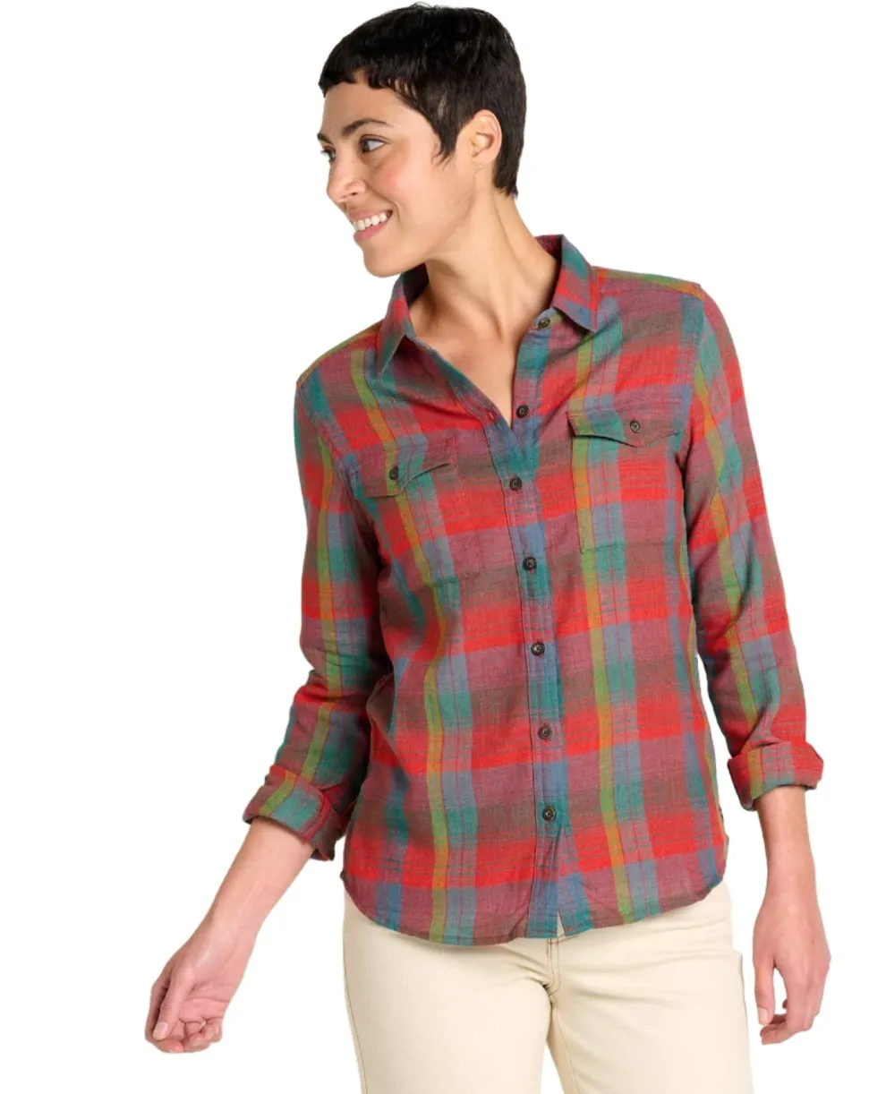 A flannel shirt fit for an outdoor queen. Ours is a lightweight herringbone weave available in epic color combos made better by recycled polyester.