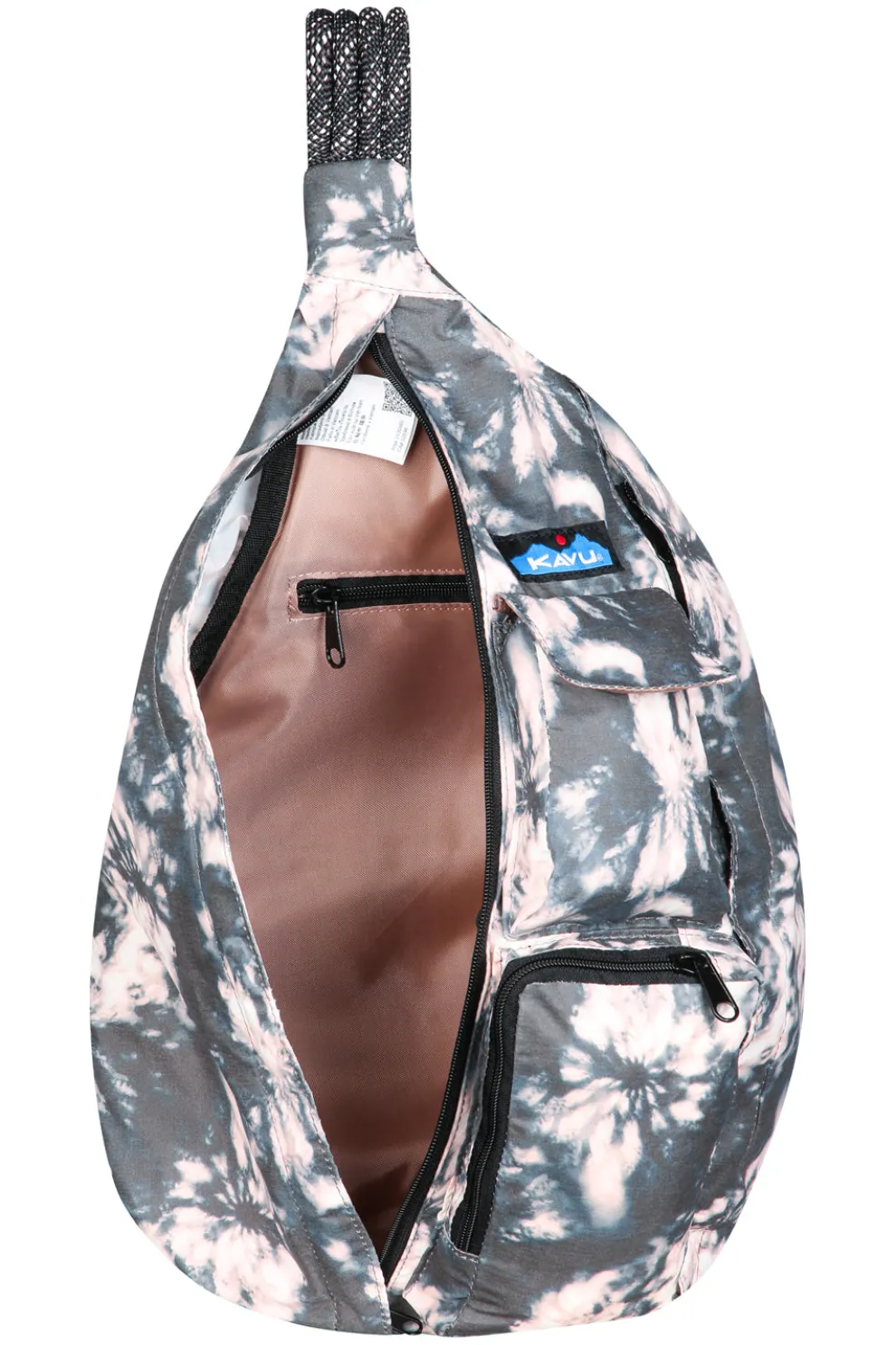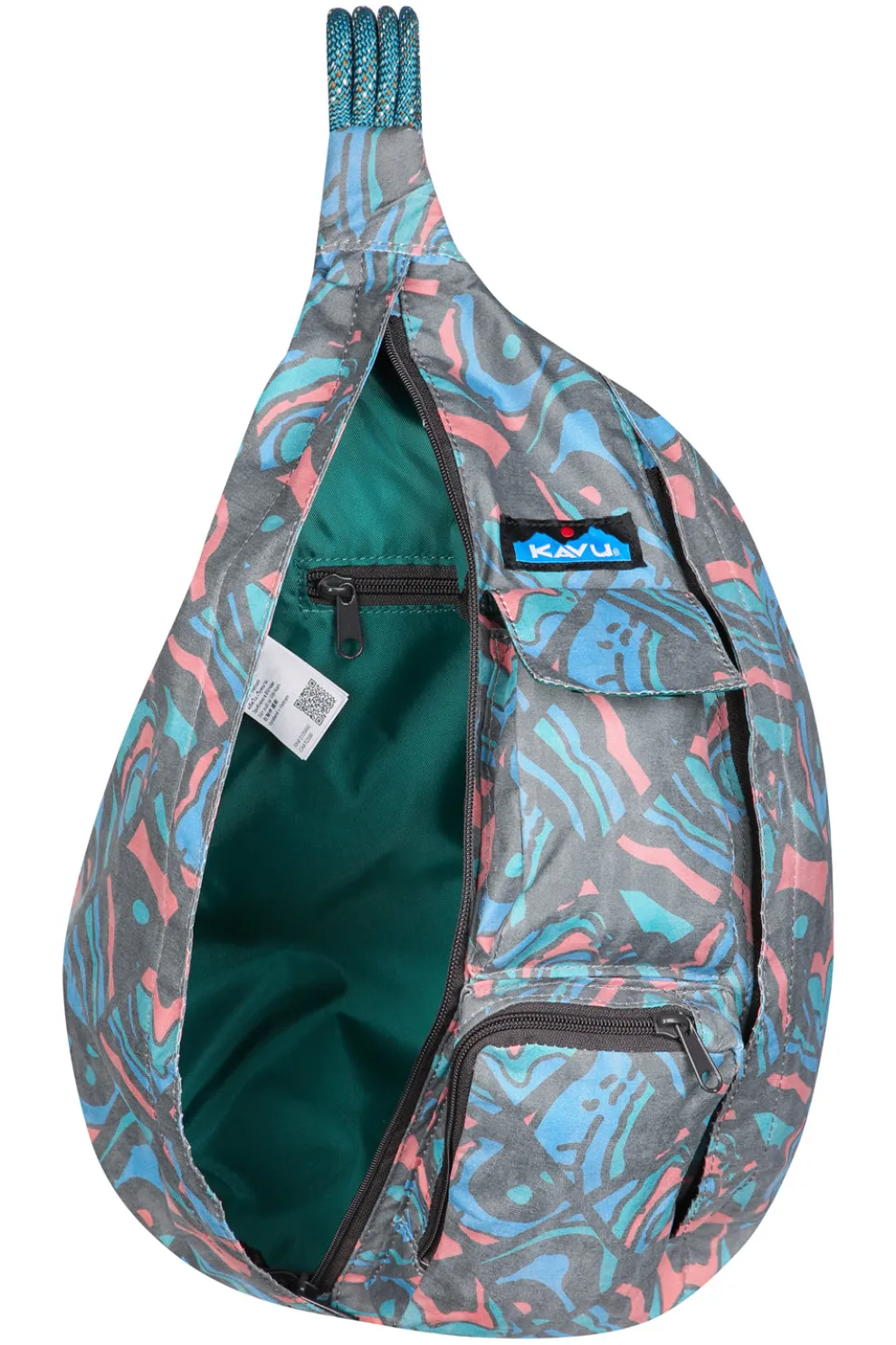 Fresh off the unicorn farm. Packed with the same features as your classic Rope Bag, but in a new 5oz 100% nylon taslan. The Rope Sack is KAVU Kool at its best. This bag will be your go to companion for all your KAVU Day shenanigans. Sling pack with adjustable rope shoulder strap, two vertical zip compartments, two key or cell phone pockets, padded back with KAVU embroidery.