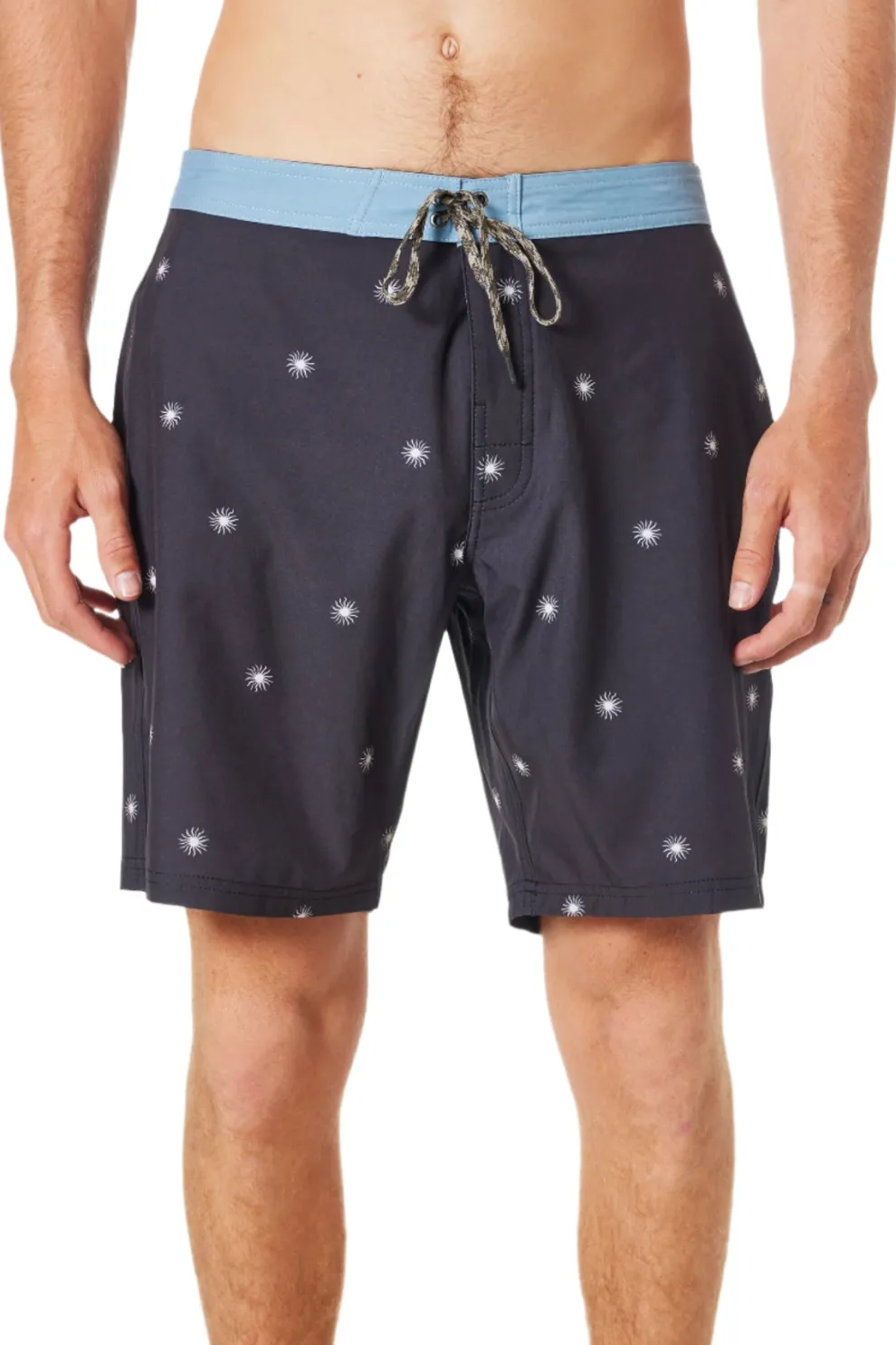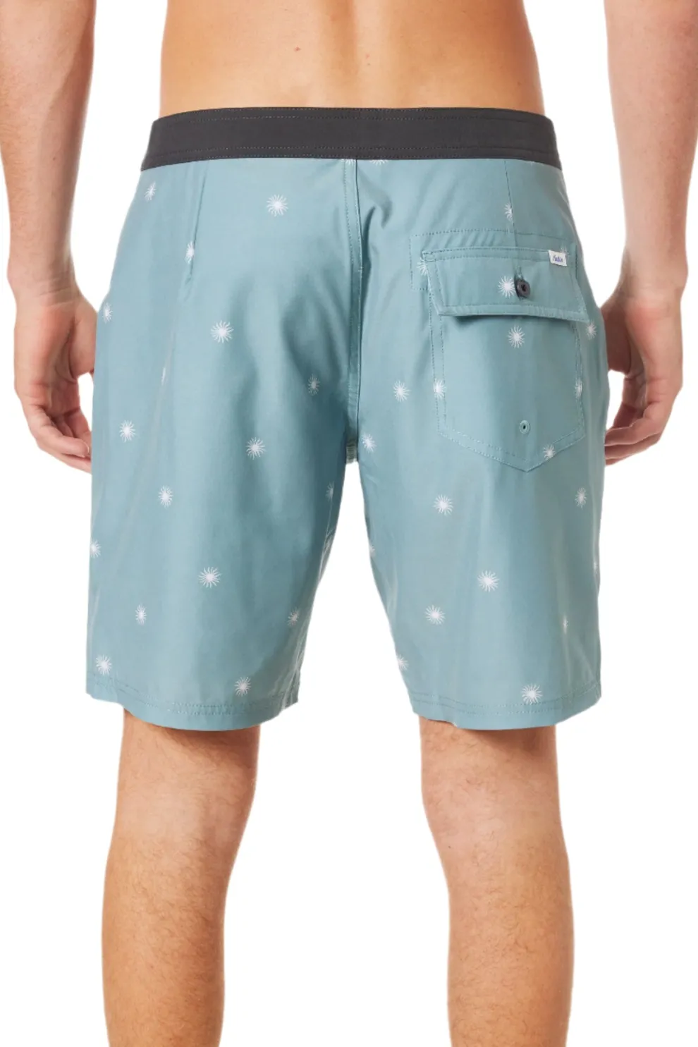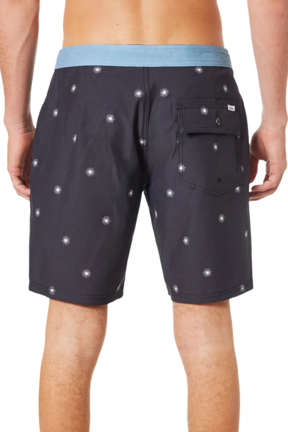 The Shine Hybrid Trunk is made with a blend of Repreve recycled polyester and spandex, and features 4-way stretch technology. Featuring a minimal sun pattern, contrast waistband, side pockets, and an interior stash pocket for convenience.