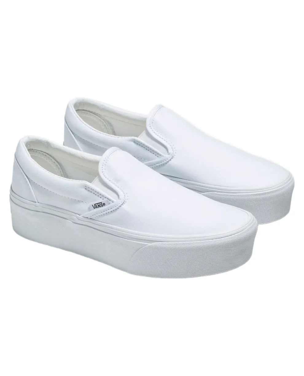 The Classic Slip-On Stackform Canvas refreshes our original slip-on silhouette with an even chunkier take on the platform aesthetic. Constructed with an exaggerated sidewall for double the height, this platform shoe amplifies a classic favorite while bringing a new Off The Wall” style to your look.