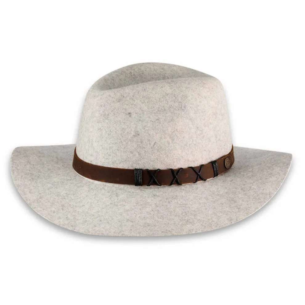 Urban, rural, casual, formal. The Soho hat goes anywhere and looks right at home. This women’s broad-brimmed fedora comes in wool felt with a soft, flexible feel. Cord detailing adds texture to the leather band.