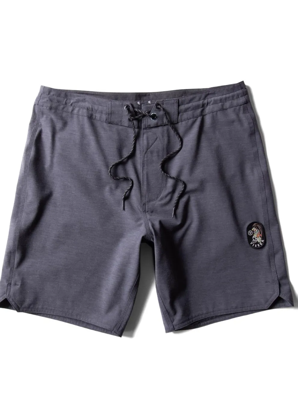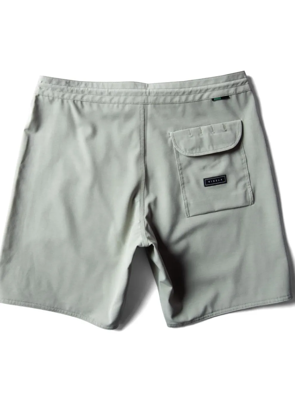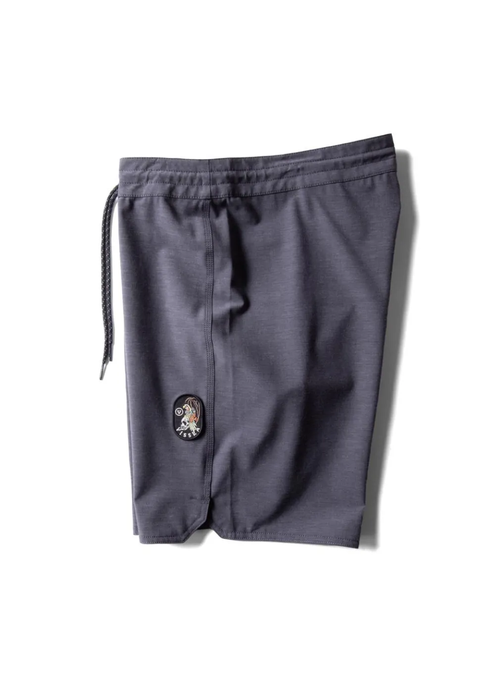 4-Way stretch boardshort made with coconut recycled poly Repreve and cotton. Contrast waistband and pocket flap side pocket and integrated key rope. Novelty Vissla embroidered patch at side. 18.5″ outseam.