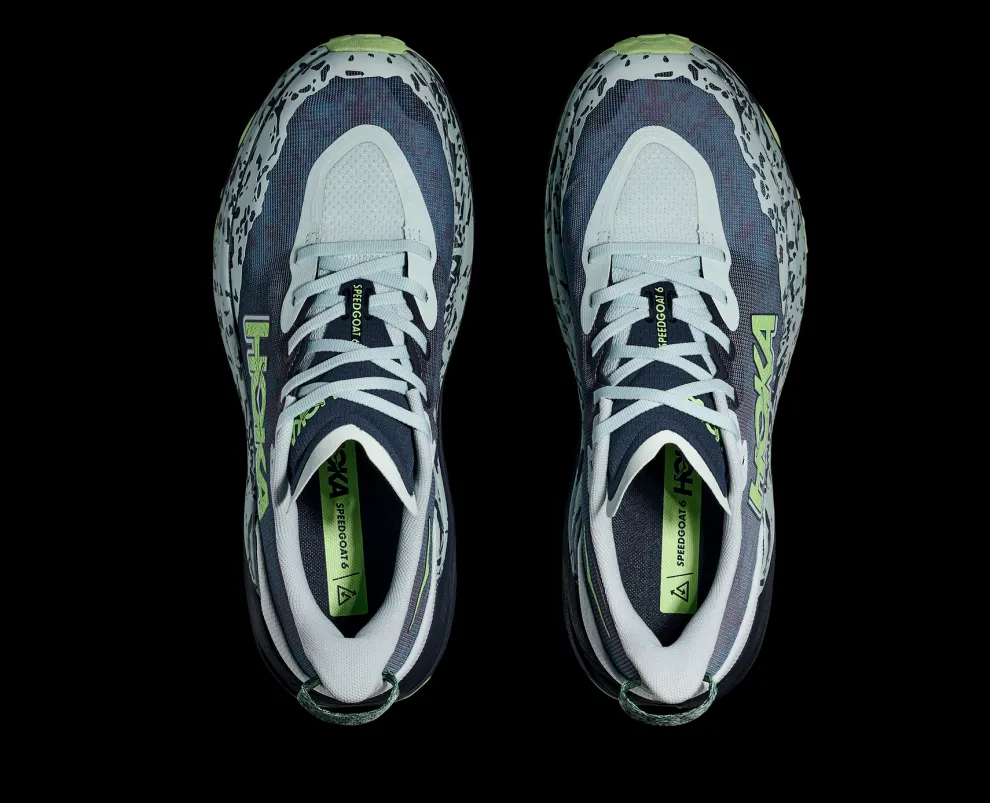 There’s only one GOAT on the trail. And this is it. Combining HOKA’s tried and true cushioning with aggressive traction and ultralight materials, the Speedgoat 6 was born to tame the trail. A workhorse for technical terrain, this recent reissue was refined with a breathable woven textile upper, foot-hugging internal chassis, plusher dual gusset tongue, and revised lug orientation inspired by the hoof of a goat (what else?)