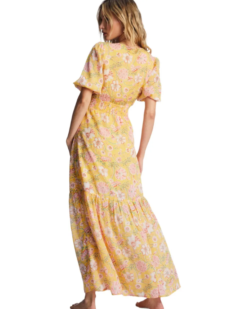 Made of recycled voile-blend fabric with a soft and sheer feel, this floral maxi dress has puff sleeves, a ruffled skirt, and a smocked waistband to define your shape.