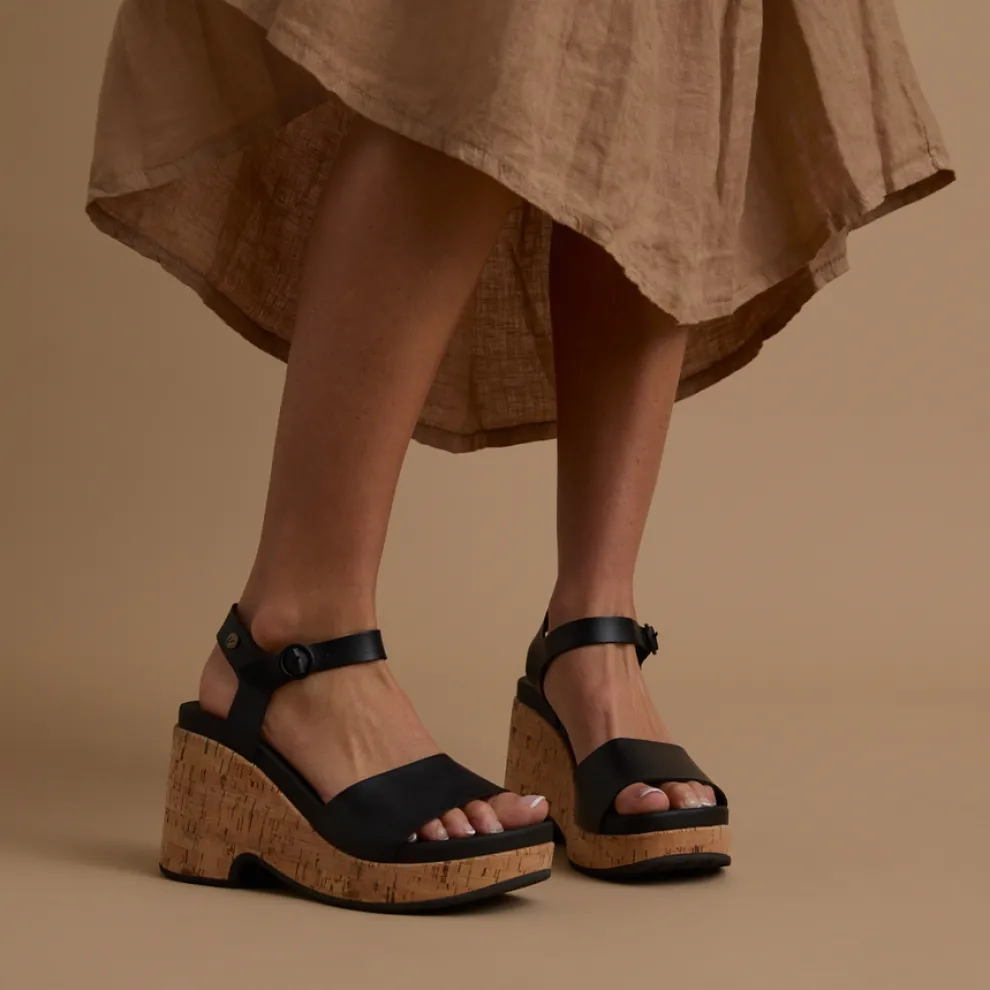 Where the margaritas flow and the music never ends, that’s the Sunset Sayulita. This fun and flirty sandal is calling for the dance floor with its adjustable ankle strap and grippy sole. From day to night, the natural cork combined with a chunky wedge make these an instant boost for your legs, and your confidence.
