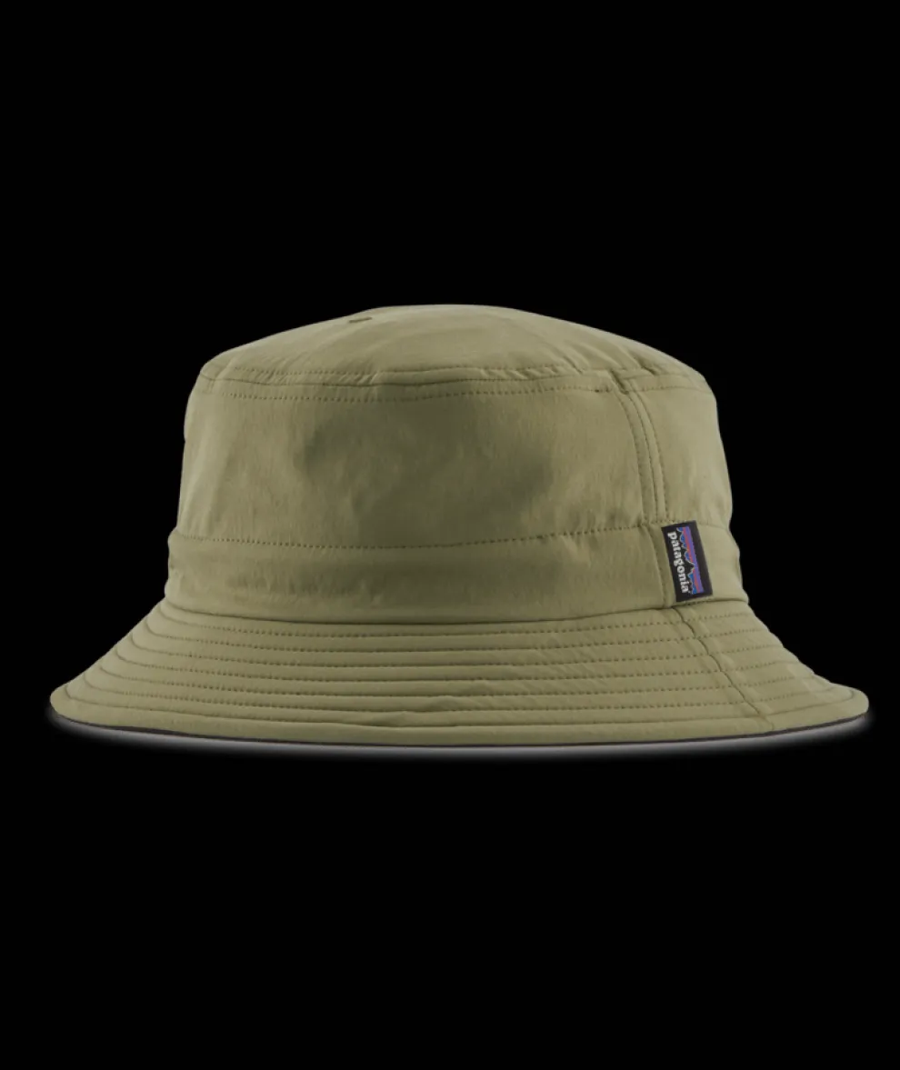 Be it waves, waders or beach towels, this brimmed bucket hat provides secure sun protection for on-water shenanigans and is built of 96% NetPlus® postconsumer recycled nylon made from recycled fishing nets to help reduce ocean plastic pollution/4% spandex plain weave with a durable water repellent (DWR) finish made without perfluorinated chemicals (PFCs/PFAS). Made in a Fair Trade Certified™ factory.