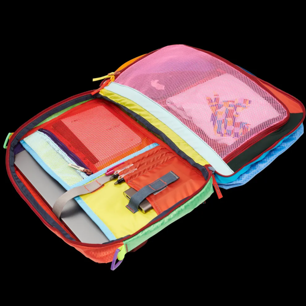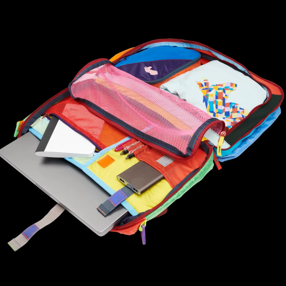 Made with panels of bright, repurposed nylon, the convertible Tasra streamlines any commute with its spacious compartments and full-wrap, zippered opening. The pack’s external pockets keep your small items organized, while the padded laptop sleeve and internal, zippered sections ensure your electronic devices and extra clothing travel in protected comfort. Tuck-away backpack straps and multiple grab handles round out this daily hauler, adding a few more travel-friendly features for life on the move. As part of our Del DÃa Collection, every Tasra is one-of-a-kind, made by employees who have creative control over each pack’s final look.