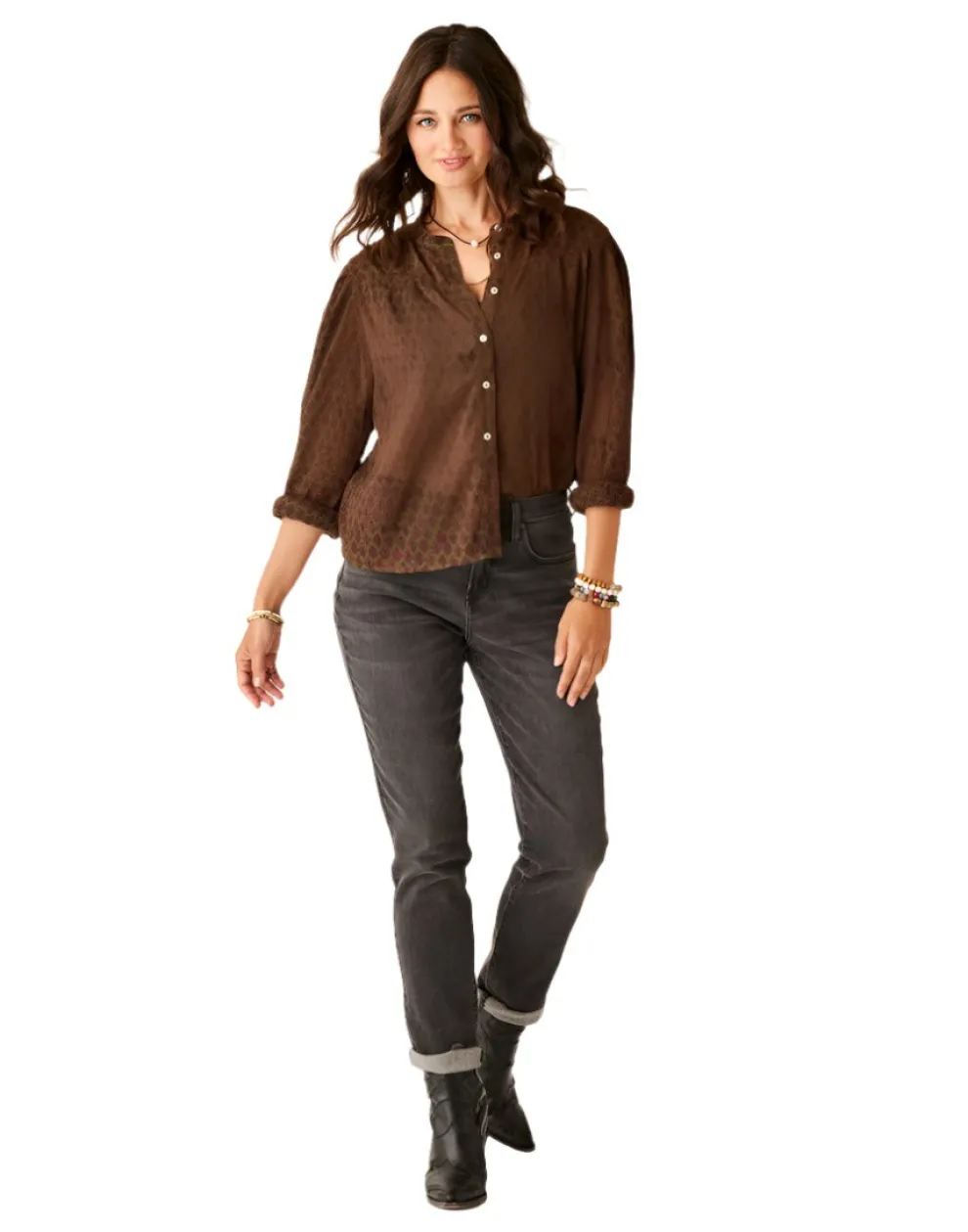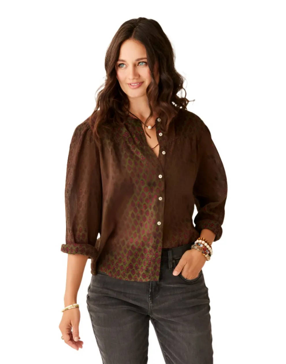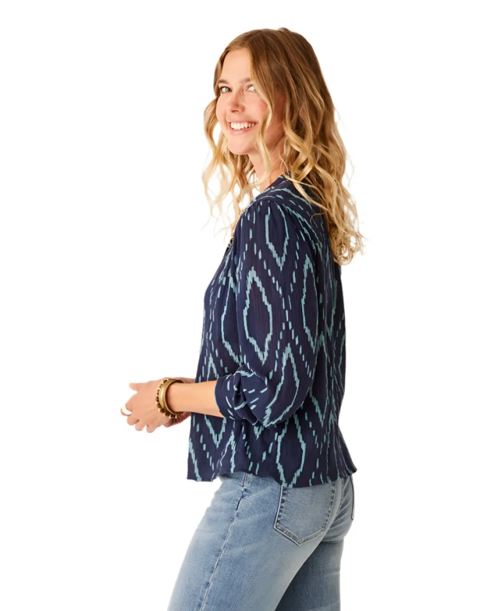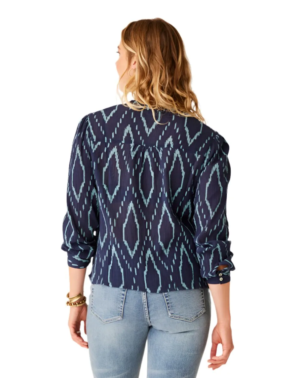 Our Dylan Gauze fabric sets the tone for warm weather victory, while gathered front yoke, volume sleeves and sleeve keyholes seal the deal.